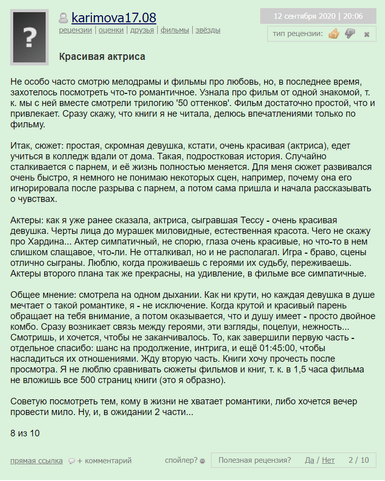 И их немало: зрители ценят такие франшизы, как «После» (и другую близкую по жанру, сюжету и настроению франшизу «Три метра над уровнем неба) за их жизненность и близость к обычным людям.